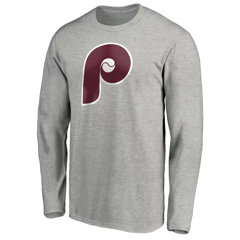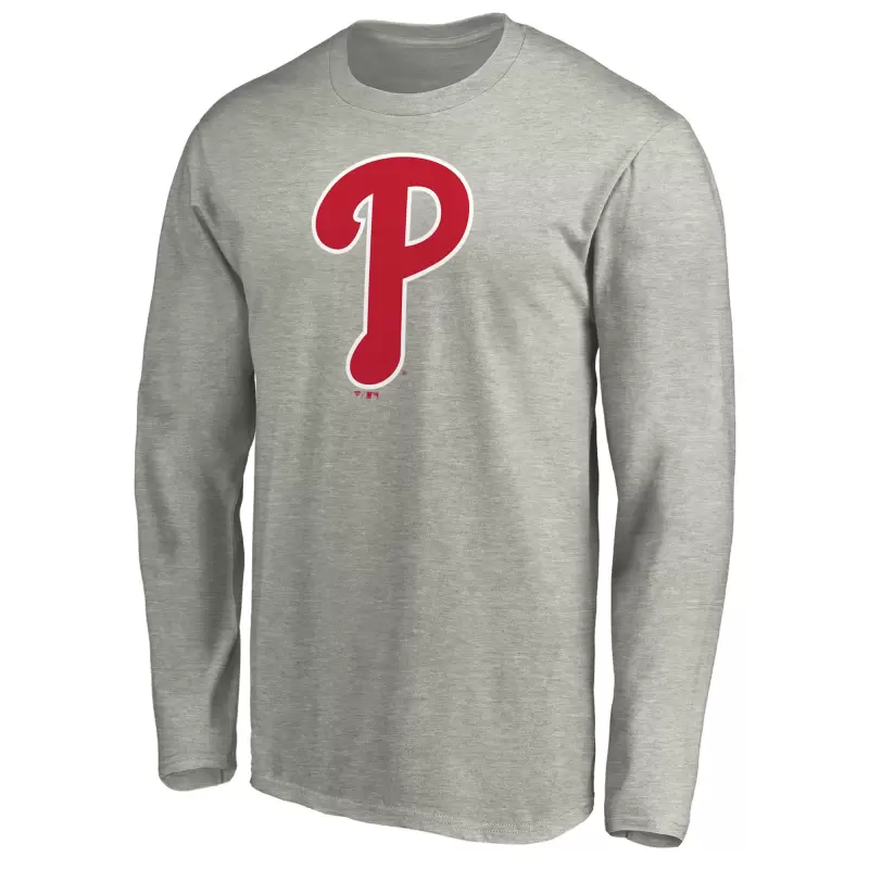 Men’s Philadelphia Phillies Heather Gray Official Team Logo Long Sleeve T-Shirt