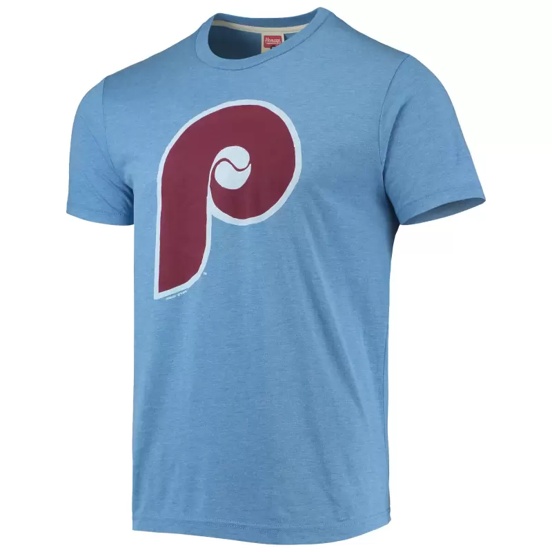 Men’s Philadelphia Phillies Homage Light Blue Hand-Drawn Logo Tri-Blend T-Shirt