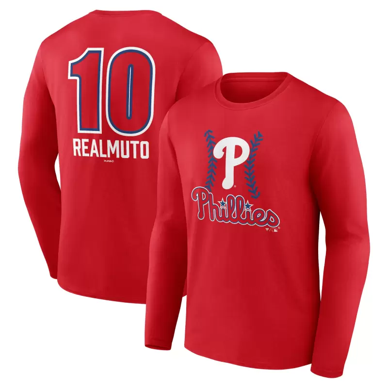 Men’s Philadelphia Phillies J.T. Realmuto Red Fastball Player Name & Number Long Sleeve T-Shirt