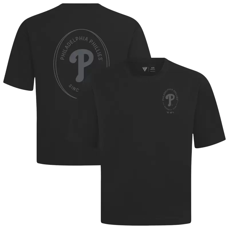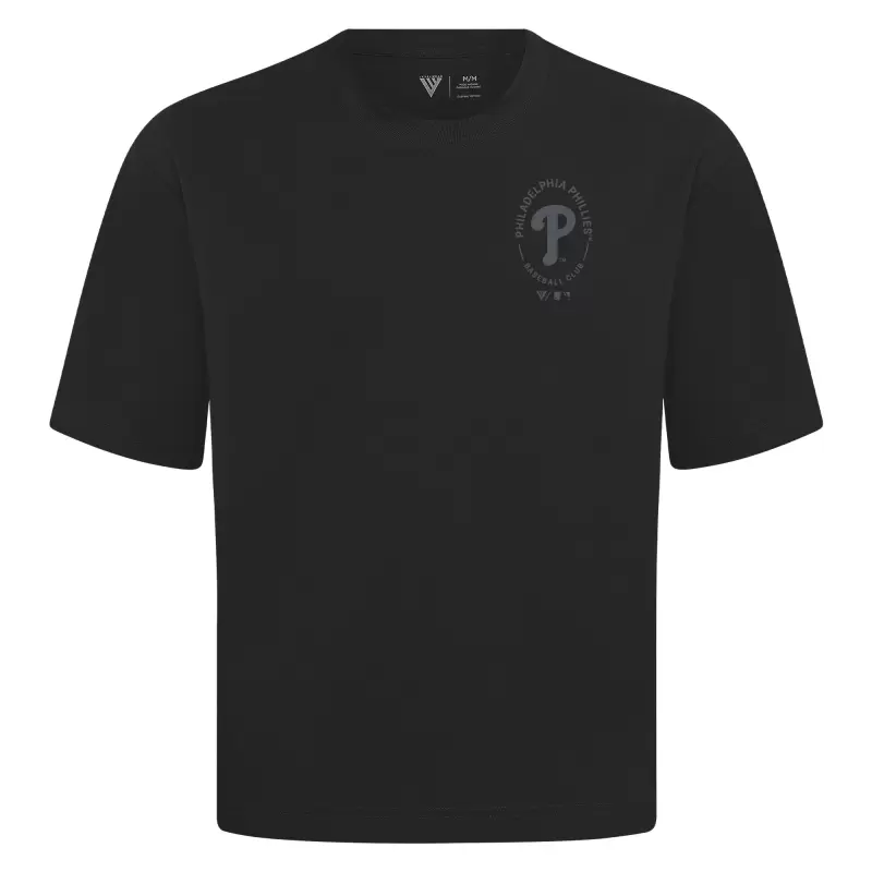 Men’s Philadelphia Phillies Levelwear Black Signet Oversized Luxe Signature Knit T-Shirt