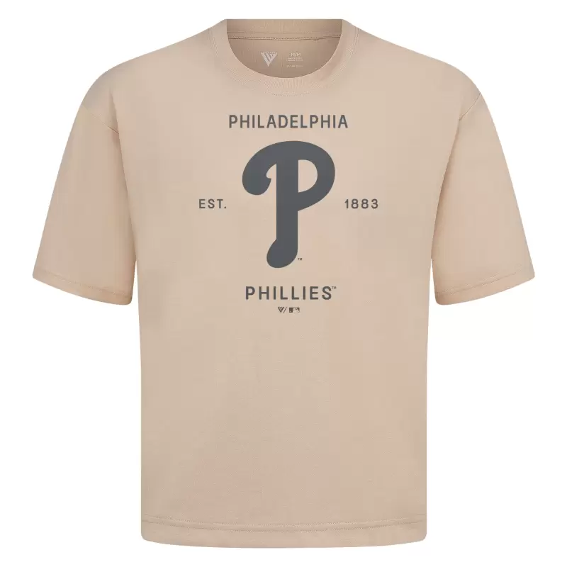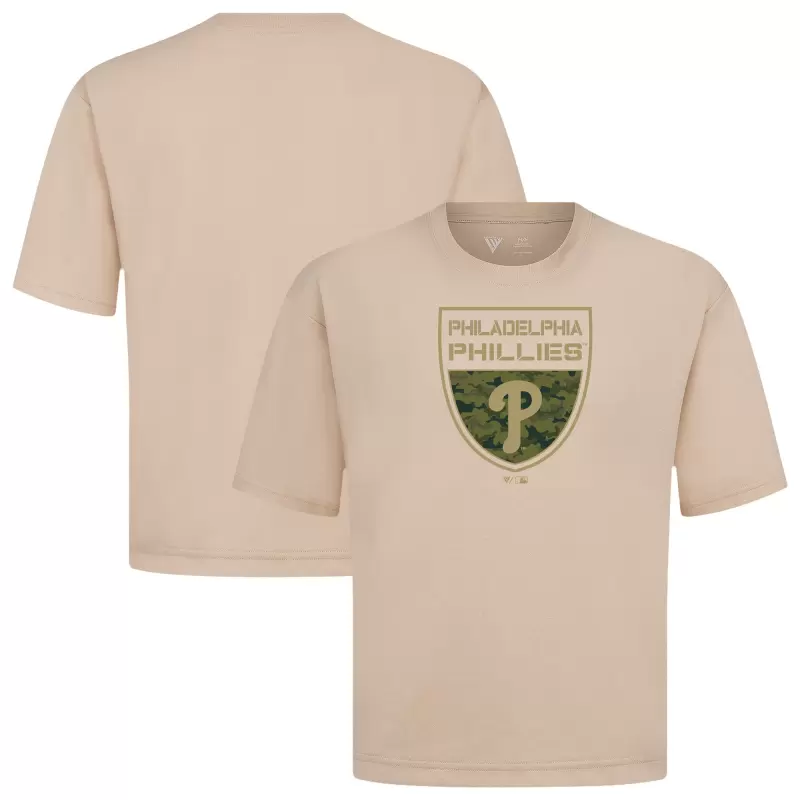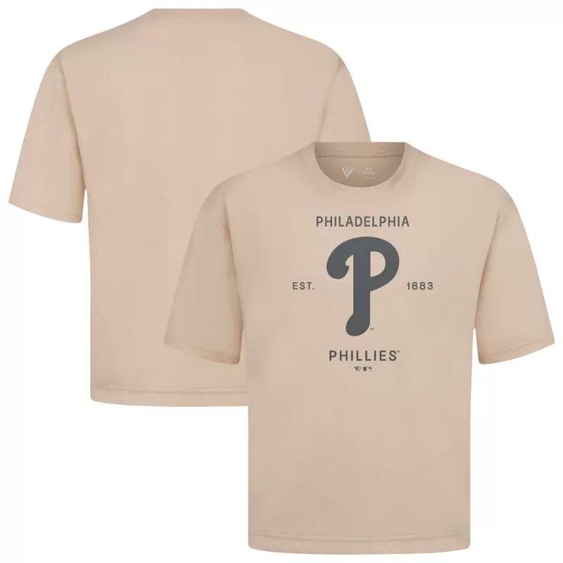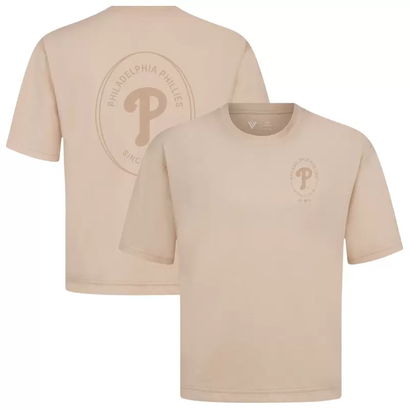 Men’s Philadelphia Phillies Levelwear Khaki Oversized Luxe Signature Knit Buckler T-Shirt