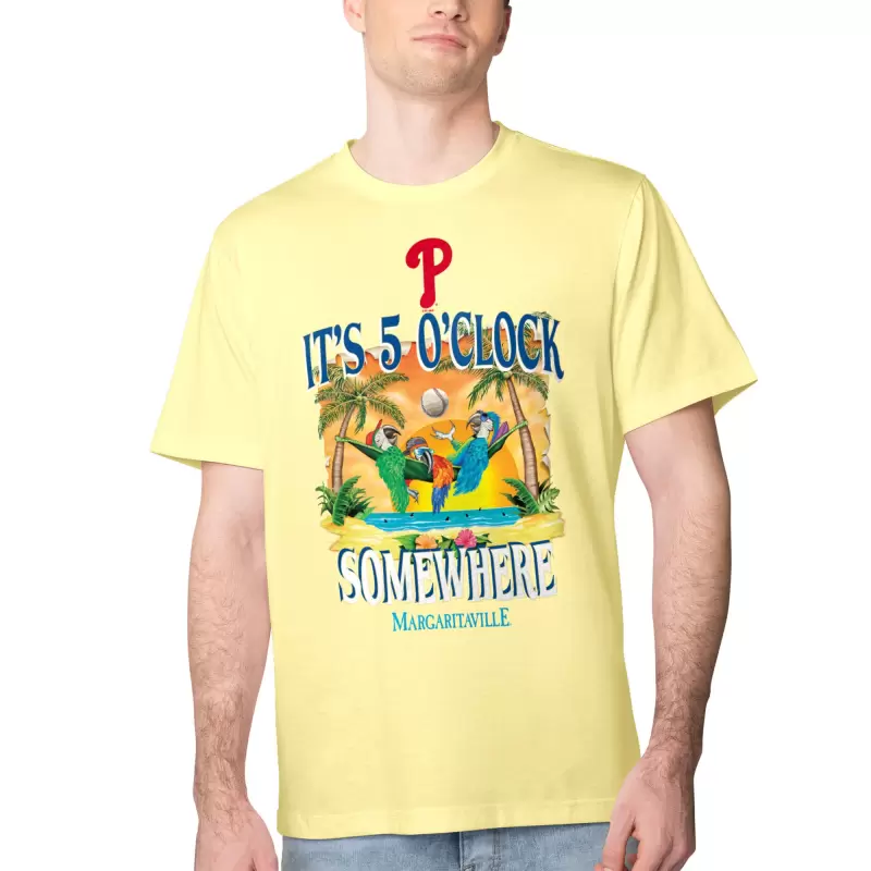 Men’s Philadelphia Phillies Margaritaville Yellow Five O’Clock Graphic T-Shirt