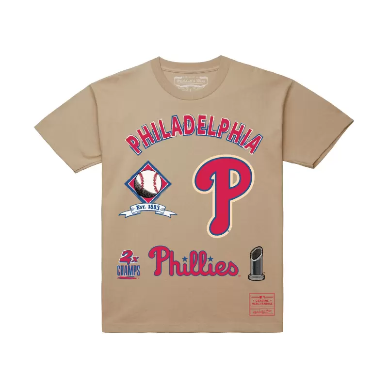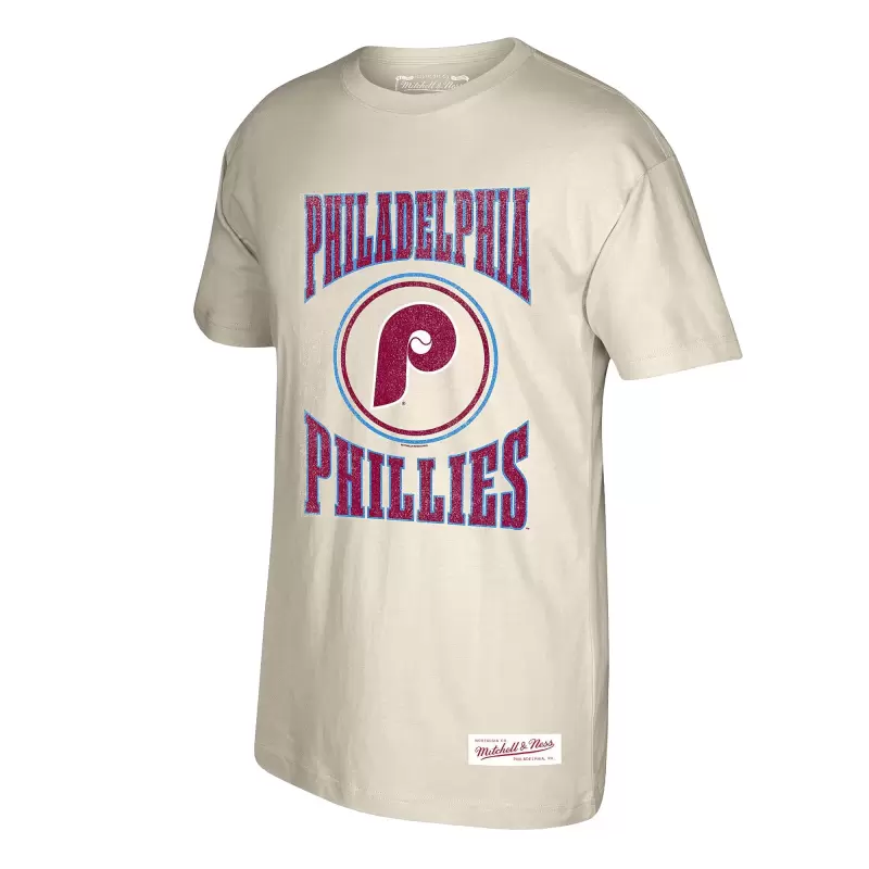 Men’s Philadelphia Phillies Mitchell & Ness Cream Arched Logo Slub T-Shirt