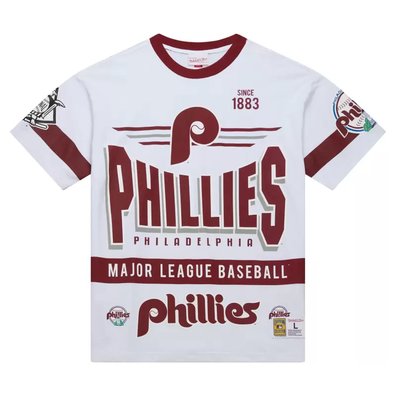 Men’s Philadelphia Phillies Mitchell & Ness White Cooperstown Collection Team Origins Premium T-Shirt