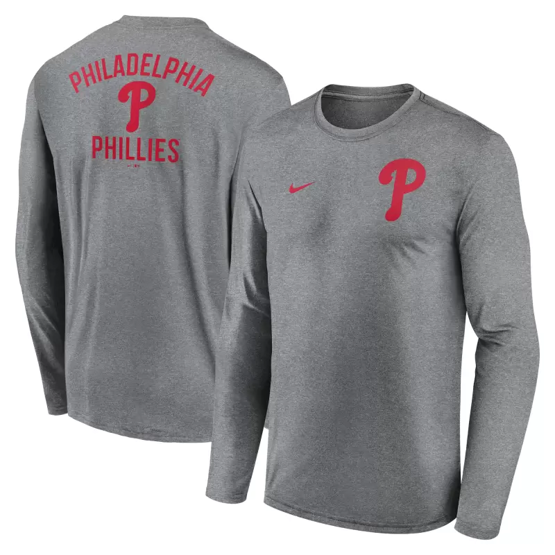 Men’s Philadelphia Phillies Nike Heather Charcoal 2-Hit Legend Dri-FIT Long Sleeve T-Shirt