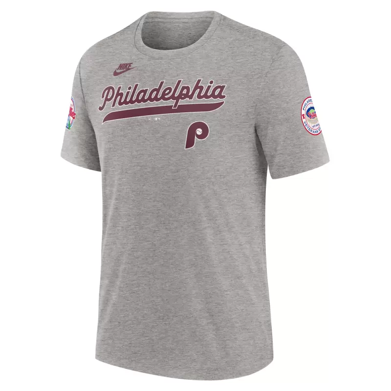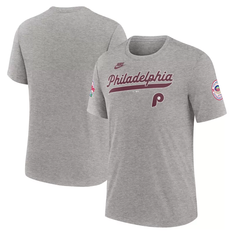 Men’s Philadelphia Phillies Nike Heather Gray Cooperstown Collection Eras Tri-Blend T-Shirt