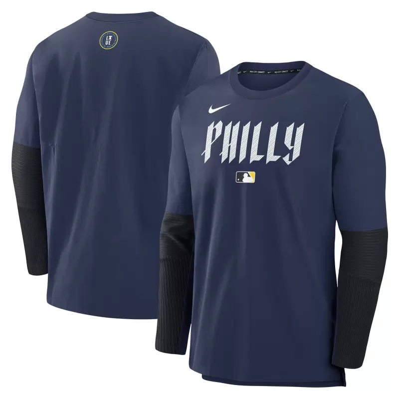Men’s Philadelphia Phillies Nike Navy 2025 City Connect Authentic Collection Player Dri-FIT Lightweight Pullover