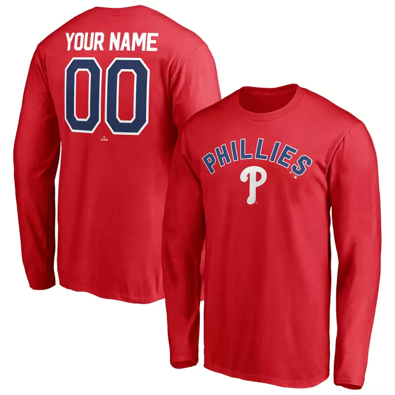Men’s Philadelphia Phillies Red Personalized Winning Streak Name & Number Long Sleeve T-Shirt