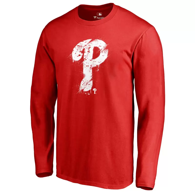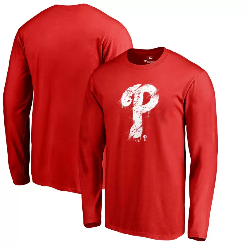 Men’s Philadelphia Phillies Red Splatter Logo Long Sleeve T-Shirt