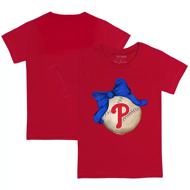 Toddler Philadelphia Phillies Tiny Turnip Red Baseball Bow T-Shirt