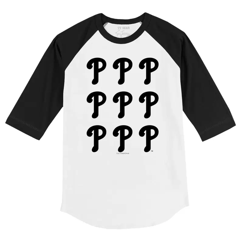 Toddler Philadelphia Phillies Tiny Turnip White Logo Grid Raglan 3/4-Sleeve T-Shirt