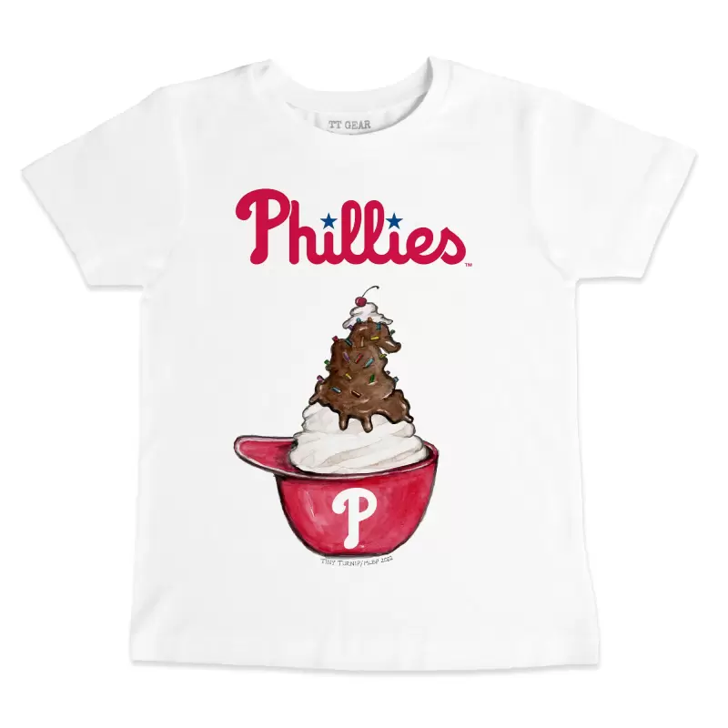Toddler Philadelphia Phillies Tiny Turnip White Sundae Helmet T-Shirt