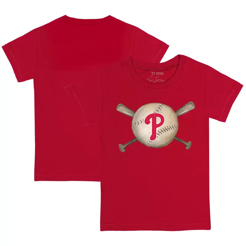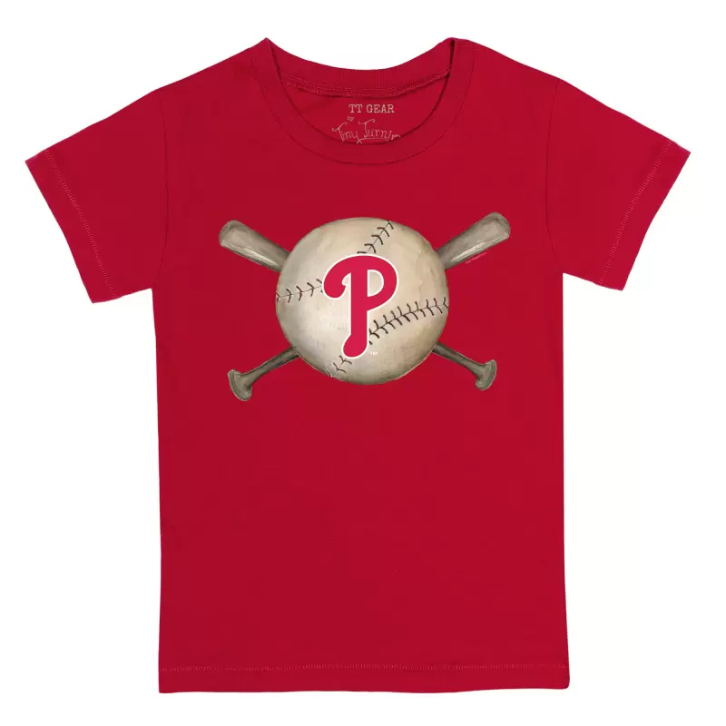 Youth Philadelphia Phillies Tiny Turnip Red Baseball Cross Bats T-Shirt