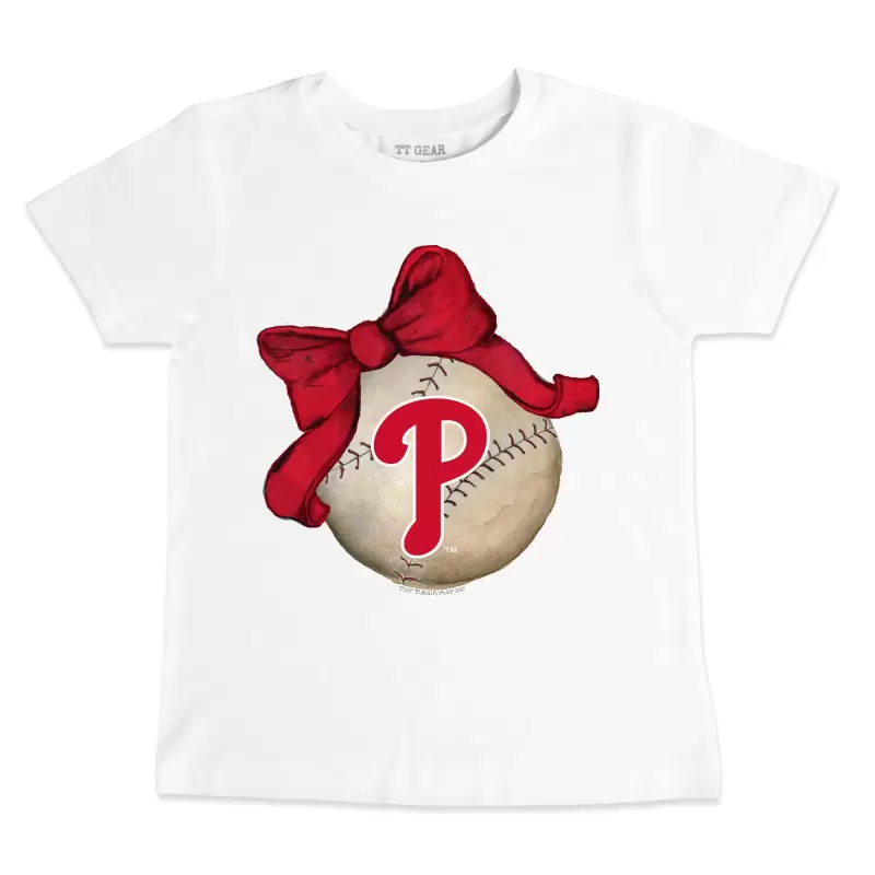 Youth Philadelphia Phillies Tiny Turnip White Baseball Bow T-Shirt