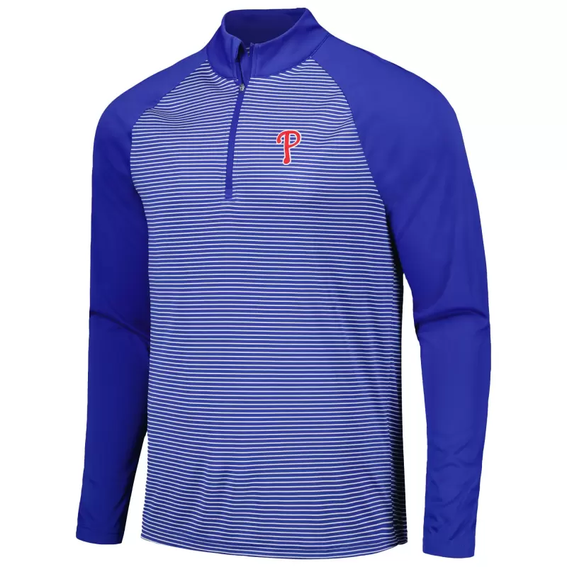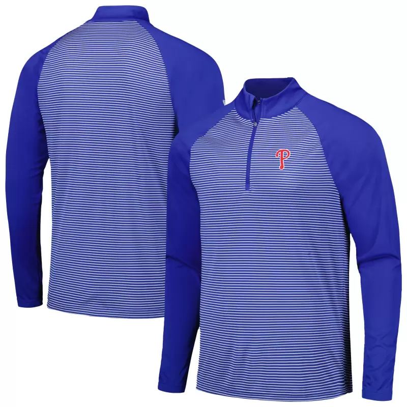 Men’s Philadelphia Phillies Levelwear Royal Charter Striped Raglan Quarter-Zip Top