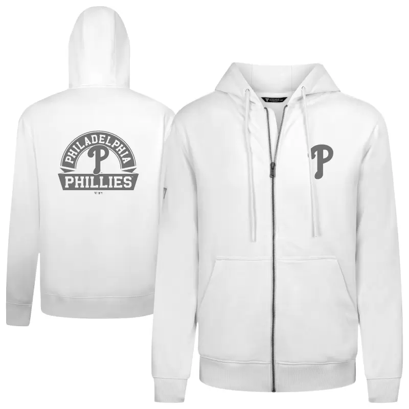 Men’s Philadelphia Phillies Levelwear White Podium Banner Arch Full-Zip Hoodie