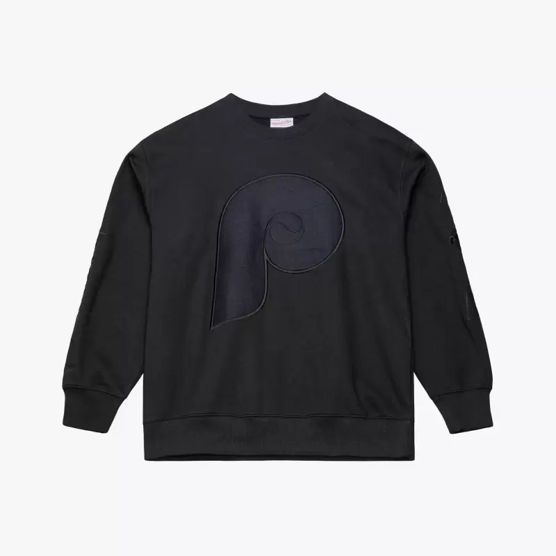 Men’s Philadelphia Phillies Mitchell & Ness Black Phantom Fleece Crewneck Sweatshirt
