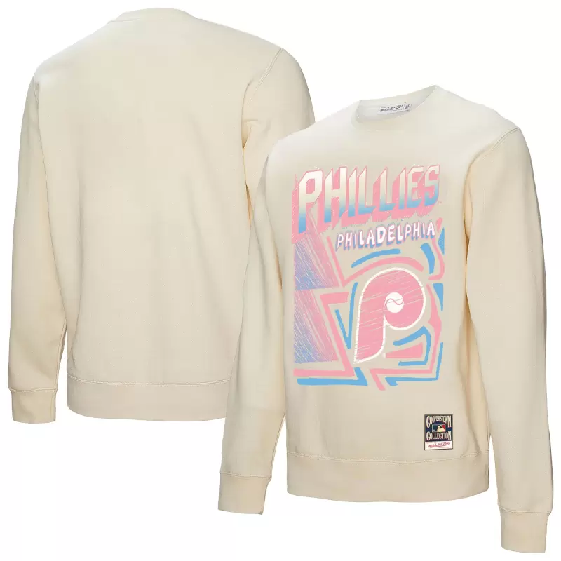 Men’s Philadelphia Phillies Mitchell & Ness Cream Sidewalk Sketch Pullover Sweatshirt