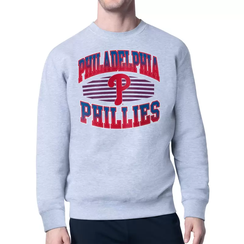 Men’s Philadelphia Phillies Starter Heather Gray Team Grit Graphic Fleece Pullover Sweatshirt