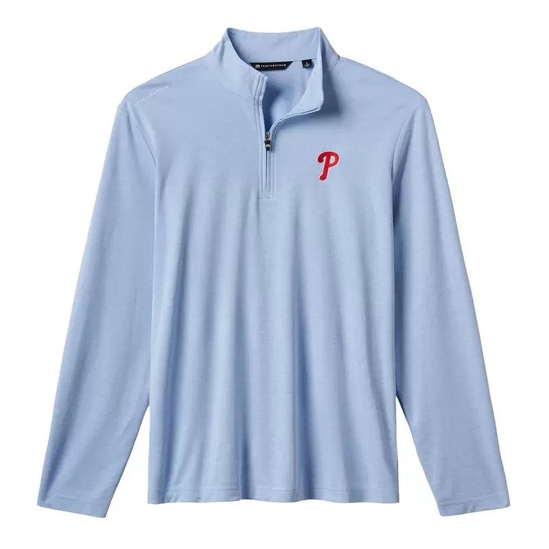 Men’s Philadelphia Phillies TravisMathew Light Blue Time to Tailgate Tri-Blend Quarter-Zip Pullover