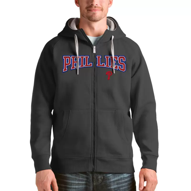 Philadelphia Phillies Antigua Charcoal Team Logo Victory Full-Zip Hoodie
