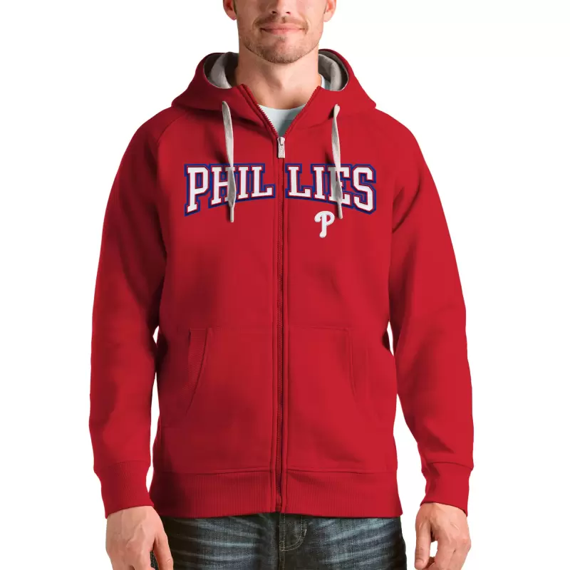Philadelphia Phillies Antigua Red Team Logo Victory Full-Zip Hoodie