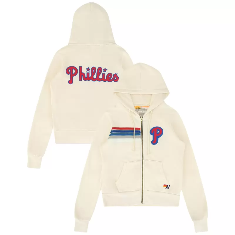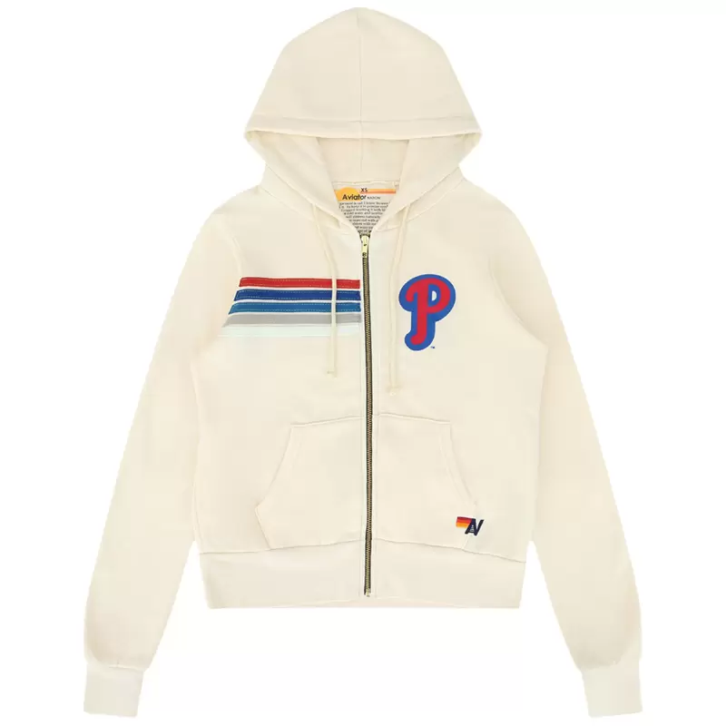 Unisex Philadelphia Phillies Aviator Nation x MLB Cream Five-Stripe Tri-Blend Full-Zip Hoodie