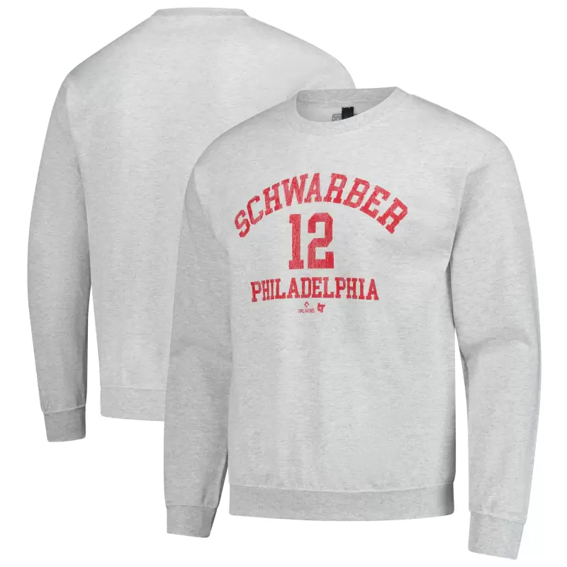 Unisex Philadelphia Phillies Kyle Schwarber BreakingT Heather Gray Player Name & Number Sweatshirt
