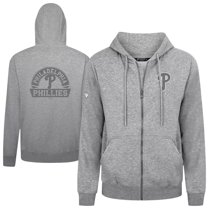 Men’s Philadelphia Phillies Levelwear Heather Gray Podium Banner Arch Full-Zip Hoodie