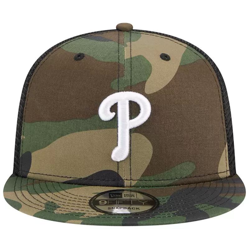 Men’s Philadelphia Phillies New Era Camo Woodland Camo Trucker 9FIFTY Snapback Hat