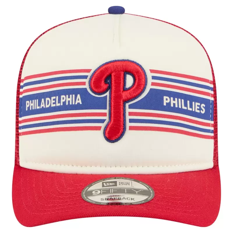 Men’s Philadelphia Phillies New Era Cream/Red Banner A-Frame 9FIFTY Trucker Snapback Hat