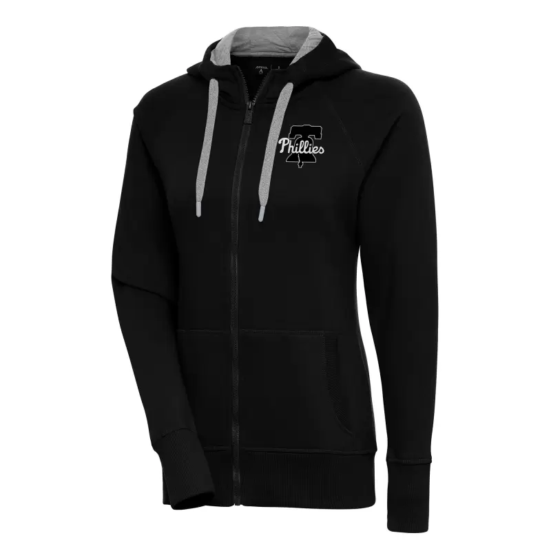 Women’s Philadelphia Phillies Antigua Black Brushed Metallic Victory Full-Zip Hoodie