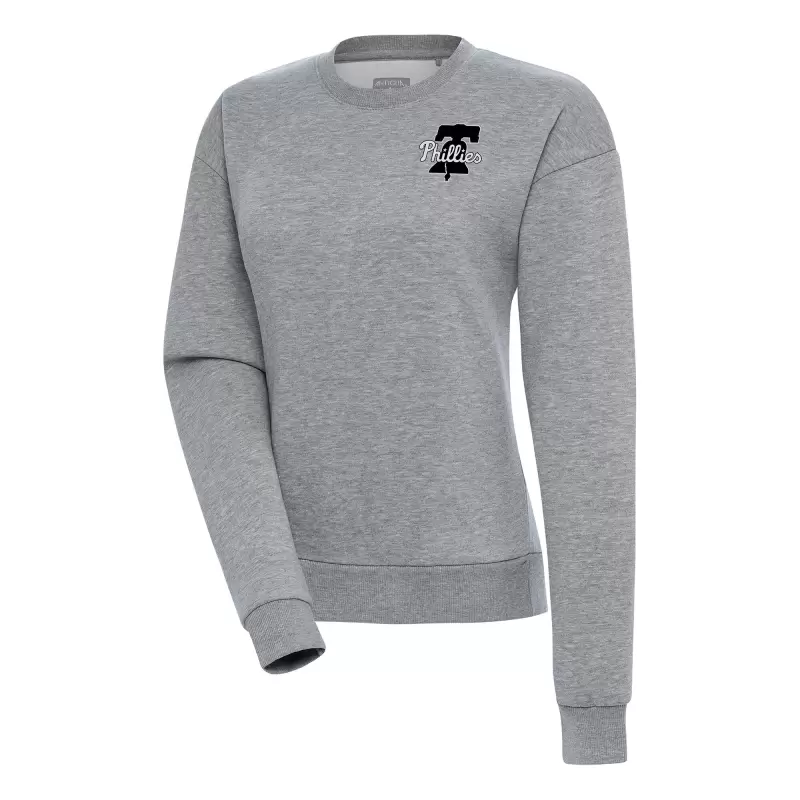 Women’s Philadelphia Phillies Antigua Heather Gray Brushed Metallic Victory Pullover Sweatshirt