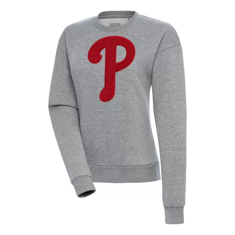 Women’s Philadelphia Phillies Antigua Heather Gray Victory Chenille Pullover Sweatshirt
