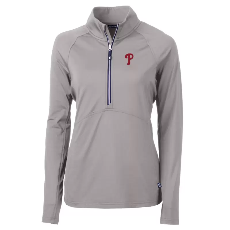 Women’s Philadelphia Phillies Cutter & Buck Gray Adapt Eco Knit Stretch Half-Zip Pullover Top