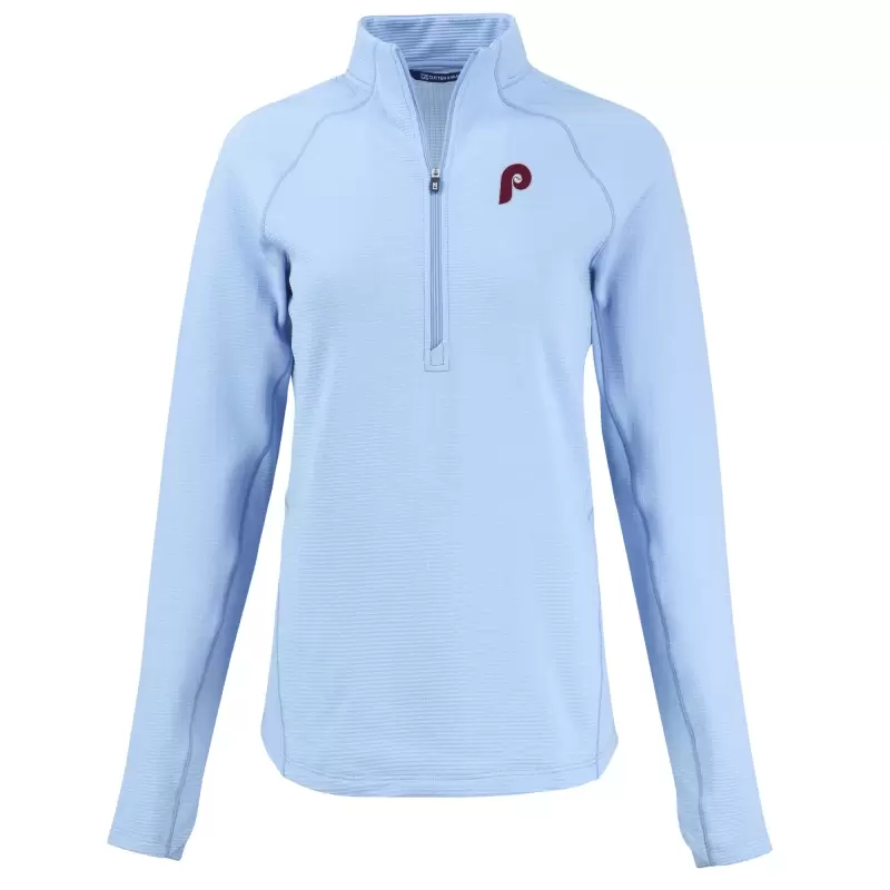 Women’s Philadelphia Phillies Cutter & Buck Heather Light Blue Peshastin Eco Fleece Recycled Raglan Half-Zip Top