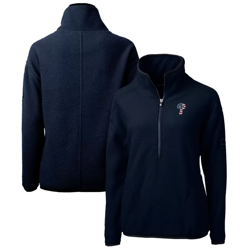 Women’s Philadelphia Phillies Cutter & Buck Navy Americana Logo Cascade Eco Sherpa Fleece Half-Zip Pullover Jacket