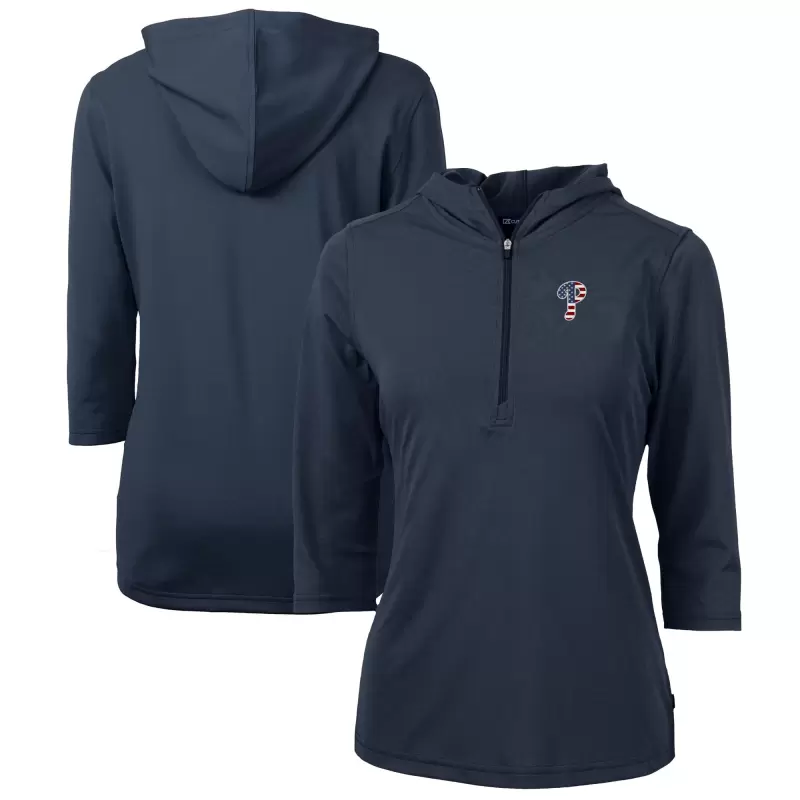 Women’s Philadelphia Phillies Cutter & Buck Navy Americana Logo DryTec Virtue Eco Pique Recycled Half-Zip Pullover Hoodie
