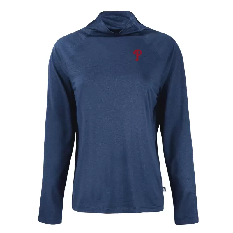 Women’s Philadelphia Phillies Cutter & Buck Navy Coastline Epic Comfort Eco Recycled Funnel Neck Raglan Pullover Top