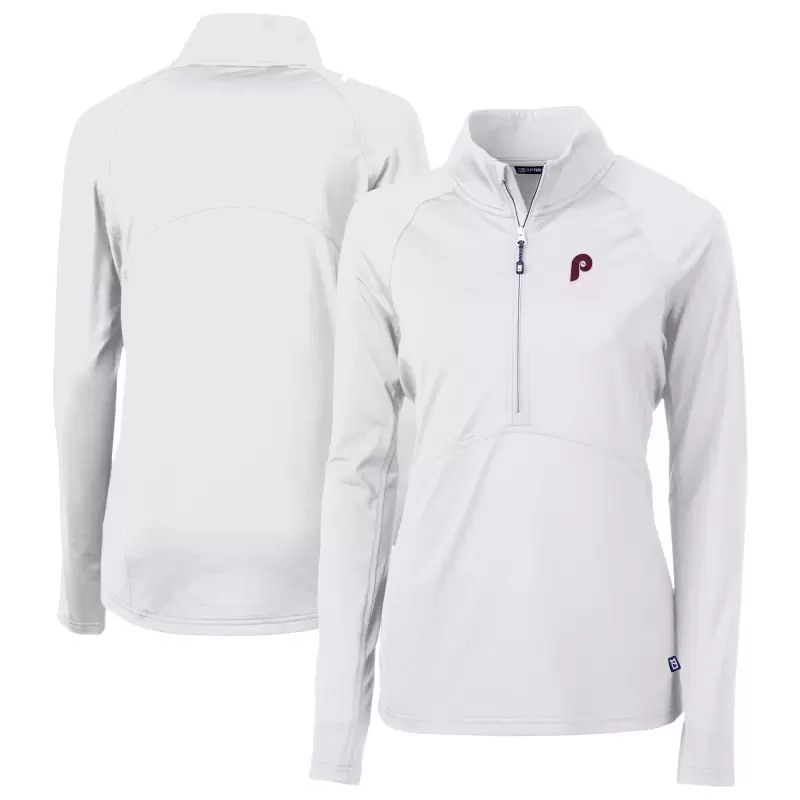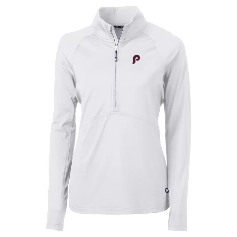 Women’s Philadelphia Phillies Cutter & Buck White Cooperstown Collection DryTec Adapt Eco Knit Stretch Recycled Raglan Half-Zip Top