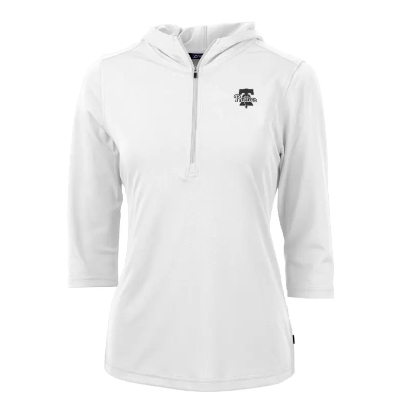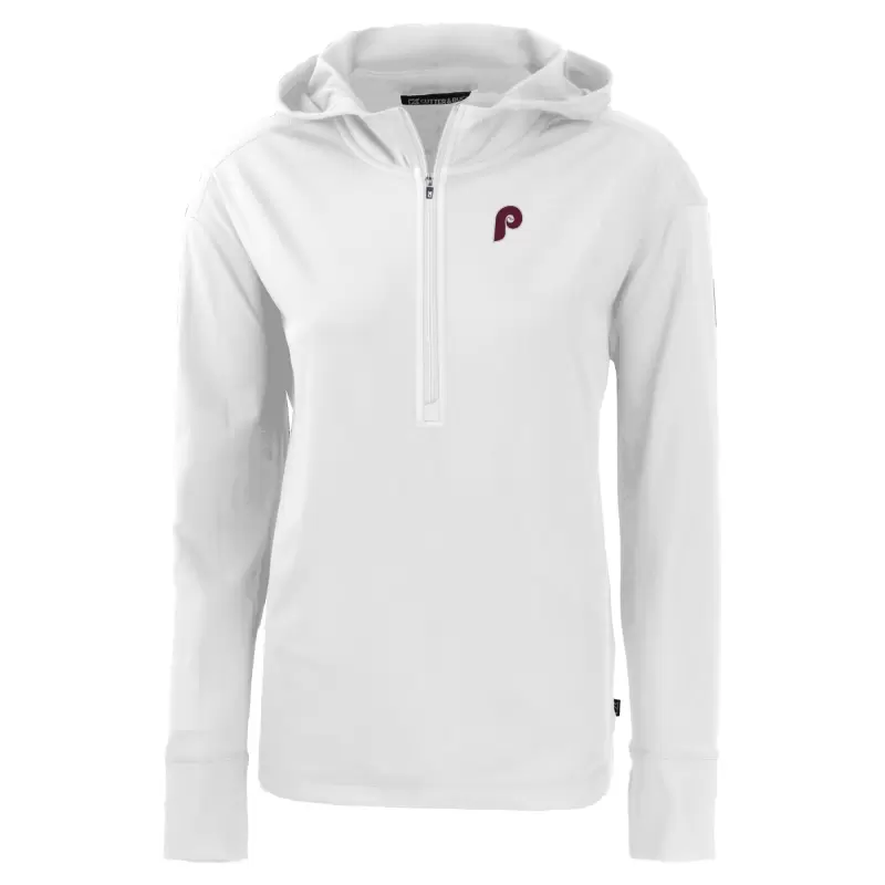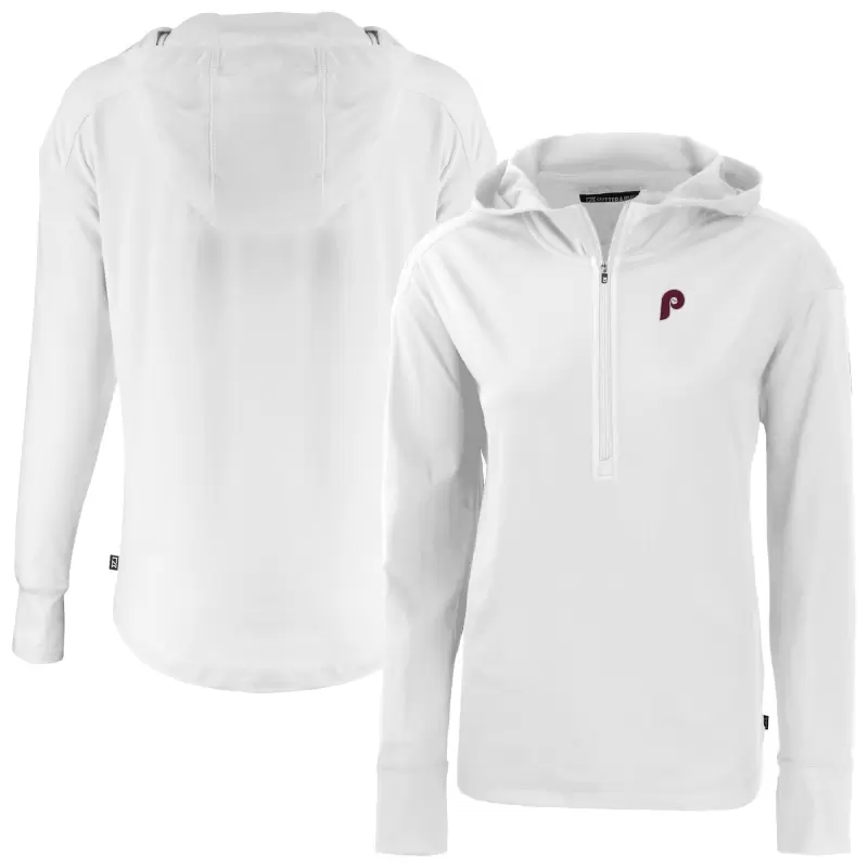 Women’s Philadelphia Phillies Cutter & Buck White Virtue Eco Pique Half-Zip 3/4 Sleeve Pullover Hoodie