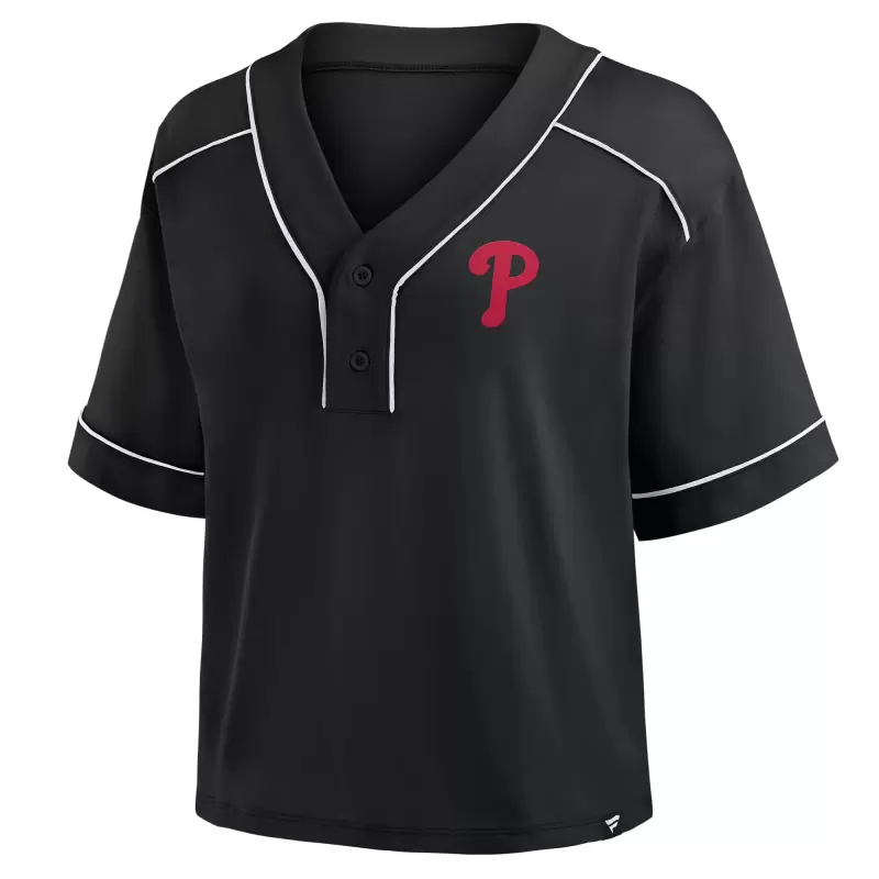 Women’s Philadelphia Phillies Fanatics Black Oversized Champ Game Cropped V-Neck T-Shirt