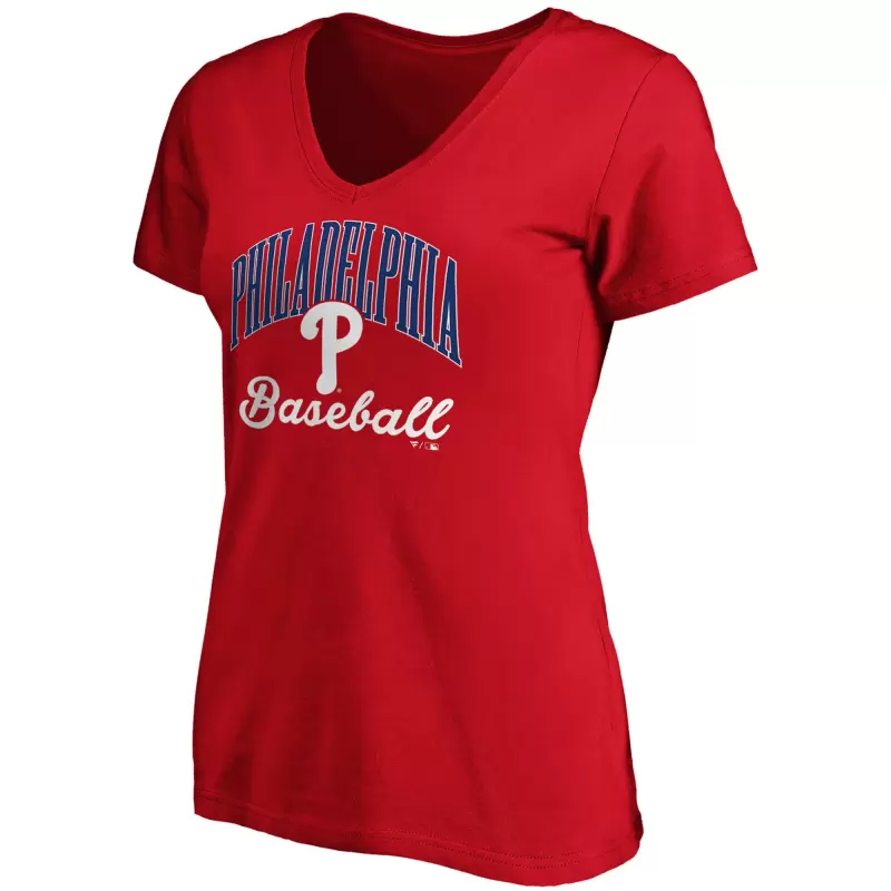Women’s Philadelphia Phillies Fanatics Red Victory Script V-Neck T-Shirt