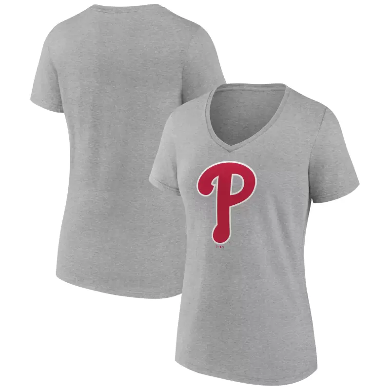 Women’s Philadelphia Phillies Gray Official Logo V-Neck T-Shirt
