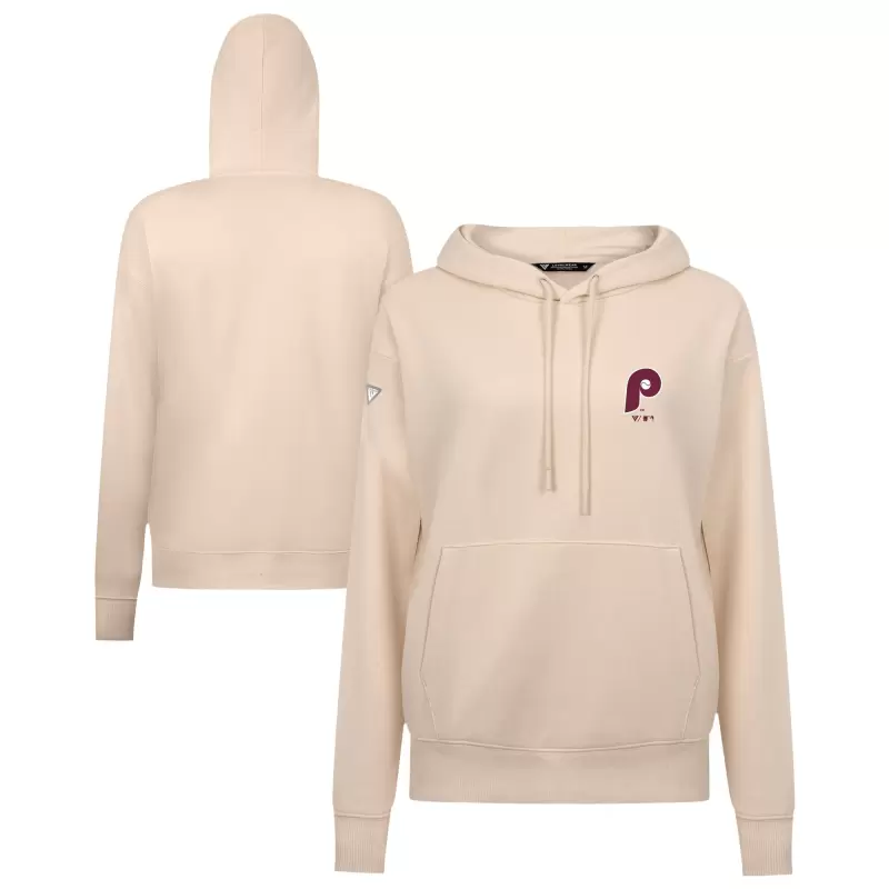 Women’s Philadelphia Phillies Levelwear Khaki Cooperstown Collection Adorn Core Logo Pullover Hoodie