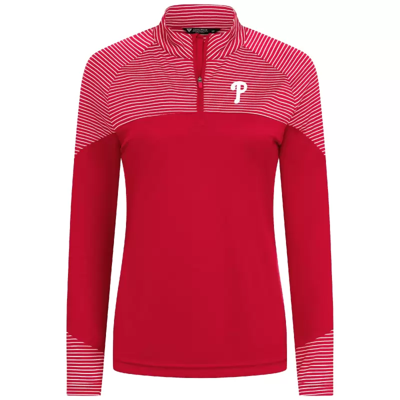 Women’s Philadelphia Phillies Levelwear Red Classic Stripes Insignia 2.0 Raglan Quarter-Zip Top