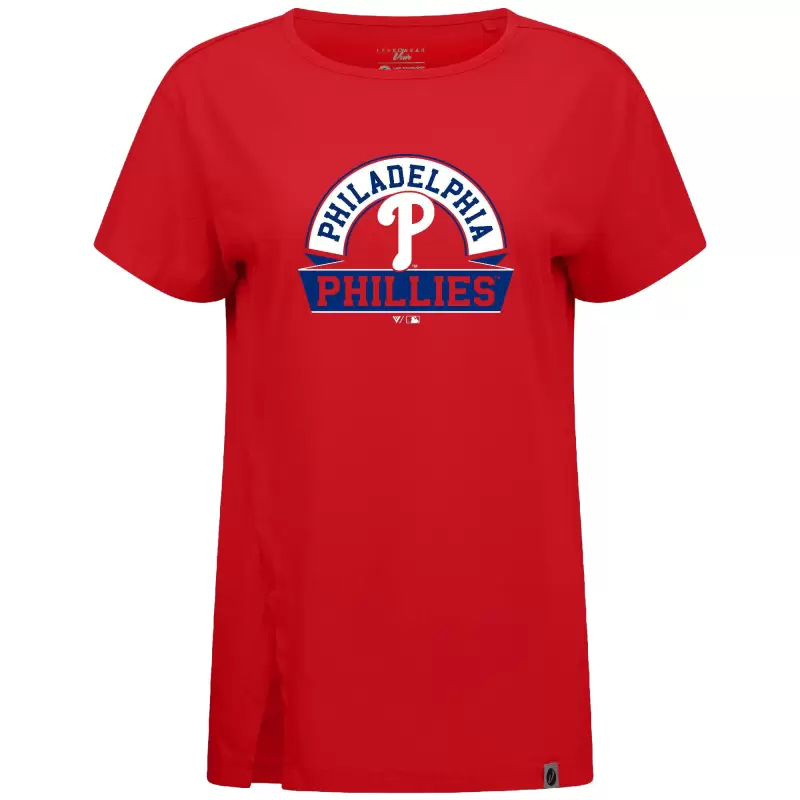 Women’s Philadelphia Phillies Levelwear Red Influx Banner Arch T-Shirt
