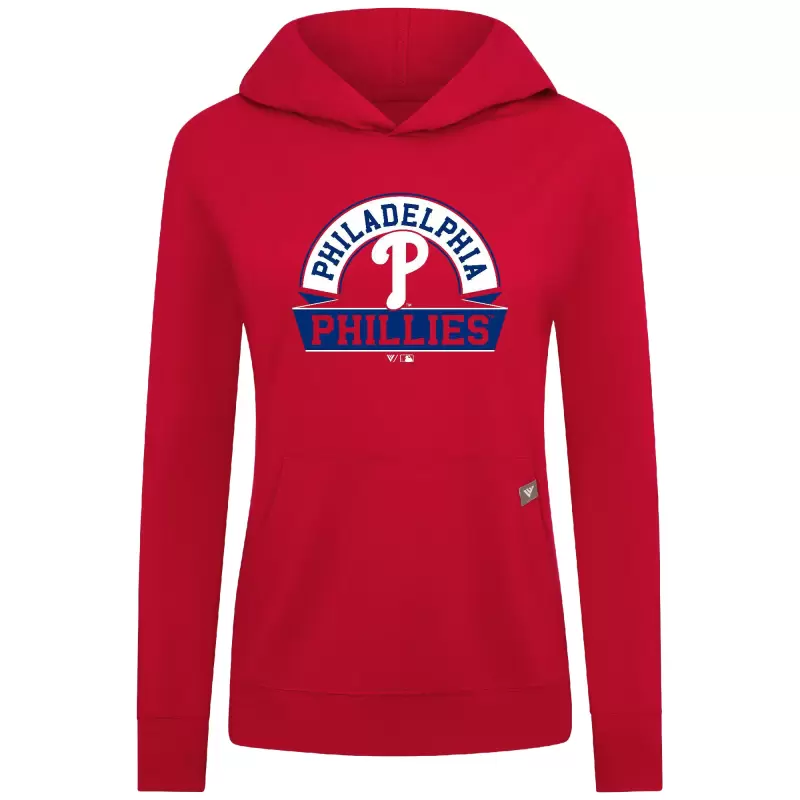 Women’s Philadelphia Phillies Levelwear Red Relay Banner Arch Long Sleeve T-Shirt Hoodie