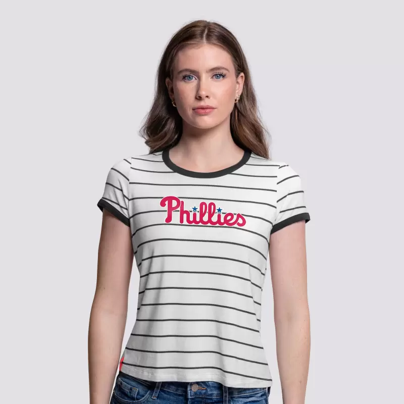 Women’s Philadelphia Phillies Lusso White Natasha Striped T-Shirt