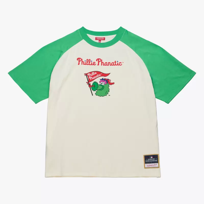 Women’s Philadelphia Phillies Mitchell & Ness White Cropped Raglan Mascot Boxy T-Shirt